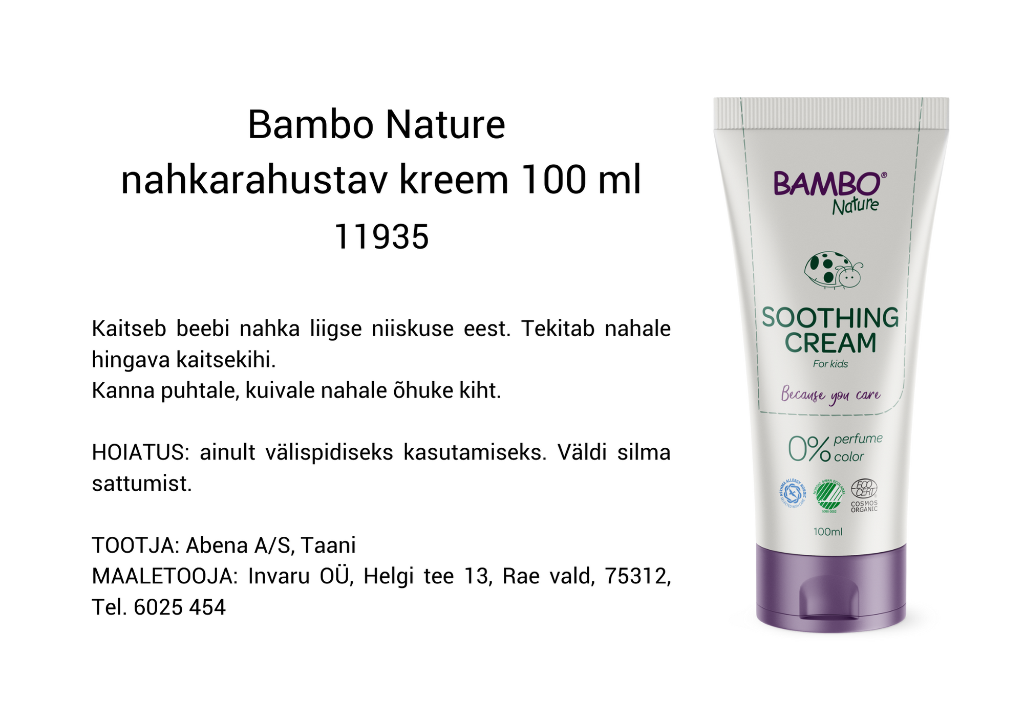 Bambo Nature nahkarahustav kreem on vetthülgav ning nahka niisutav, rahustav ja toitev.