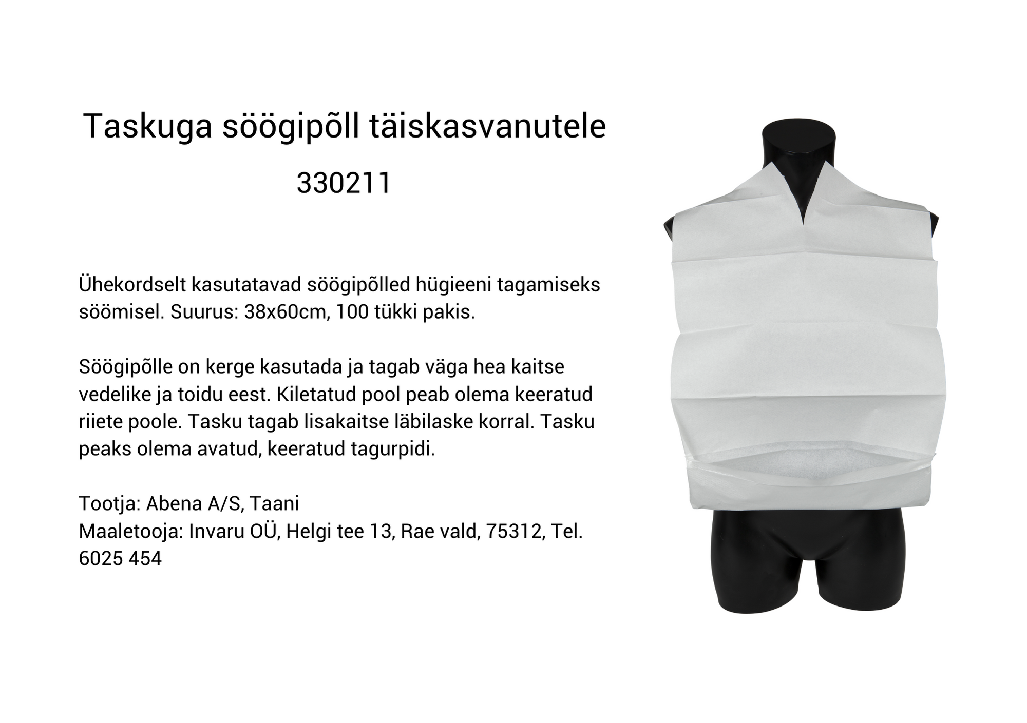 Ühekordne söögipõll hoiab söömise ajal riided puhtad.